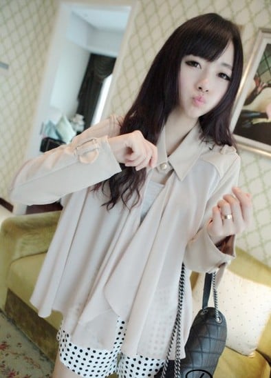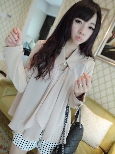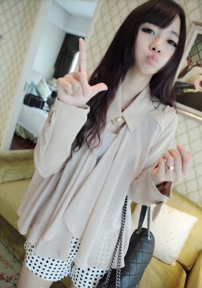 Fresh Style One-button Chiffon Cape Blouse