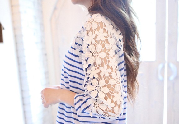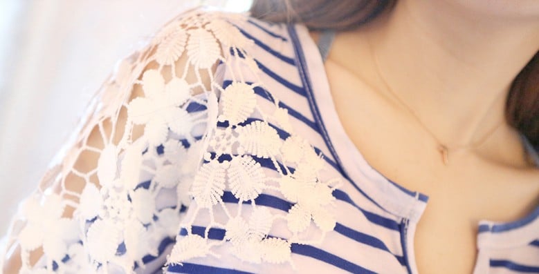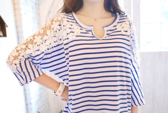 Cute Girls V-neck Stripes Long Sleeve T-shirt