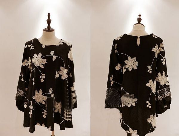Exquisite Design Flower Embroidery Hollow Out Patchwork Long Blouses