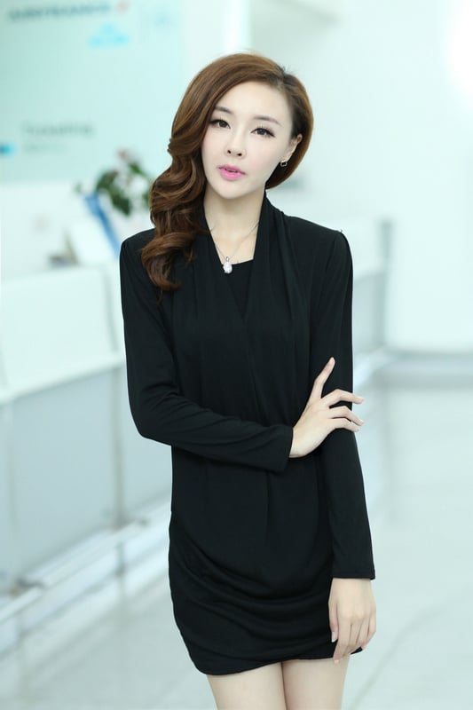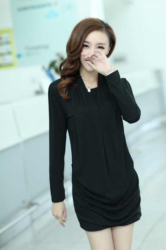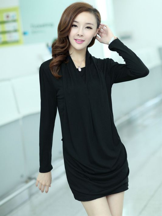 Fall Fashion Solid Color Long Sleeve Cotton Halter Dress