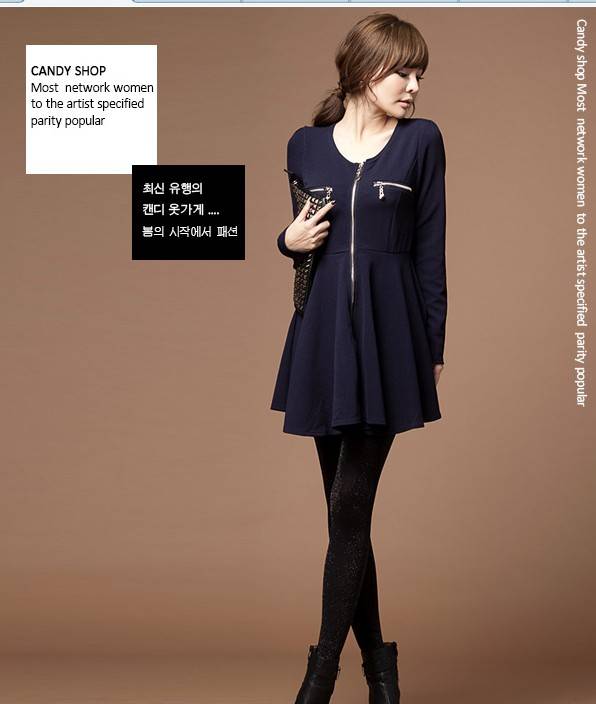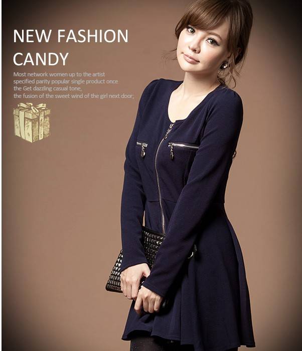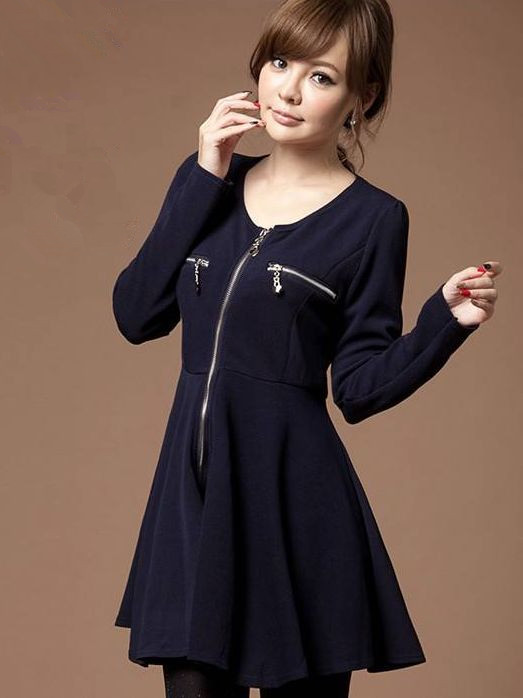 New Arrival Elegant Round Neck Zipper Long Sleeve Dress
