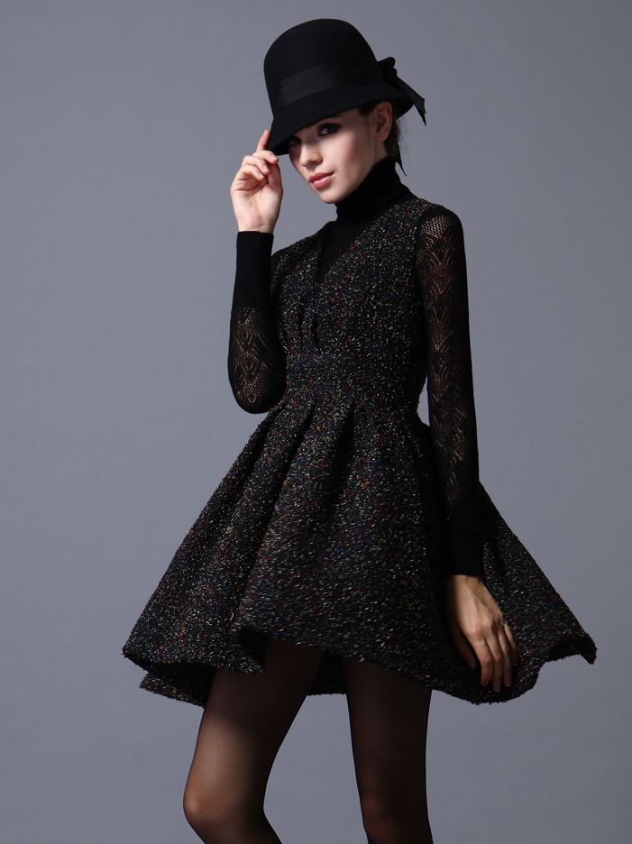 New Celebrity V-neck Empire Waist Woolen Tank Dress