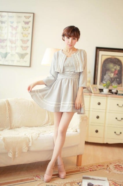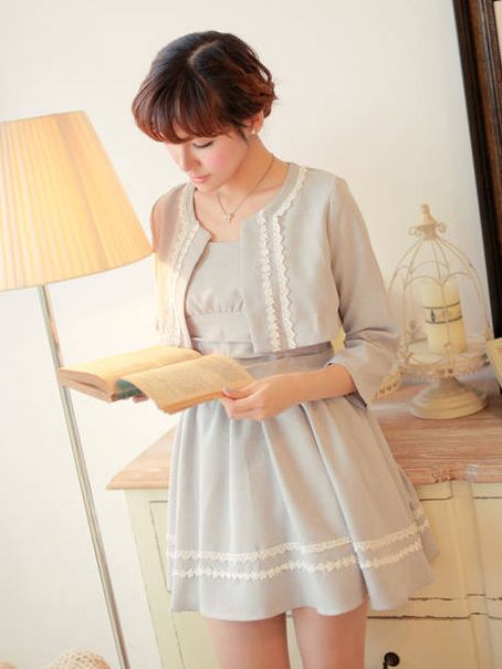 Autumn Lace Decoration Round Neck Two Pieces Dress