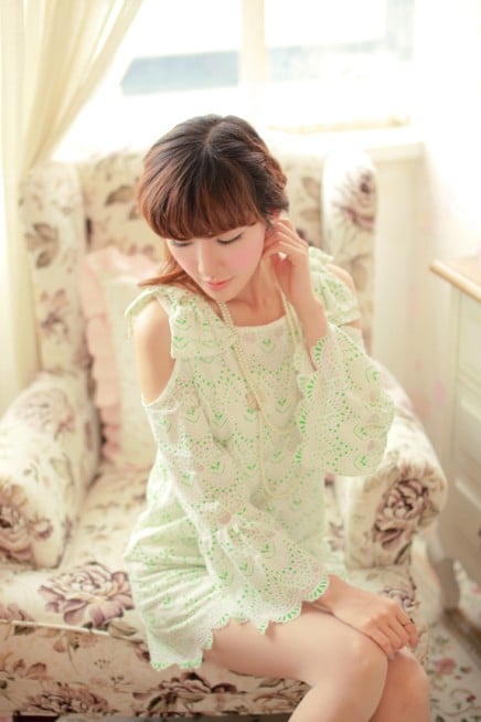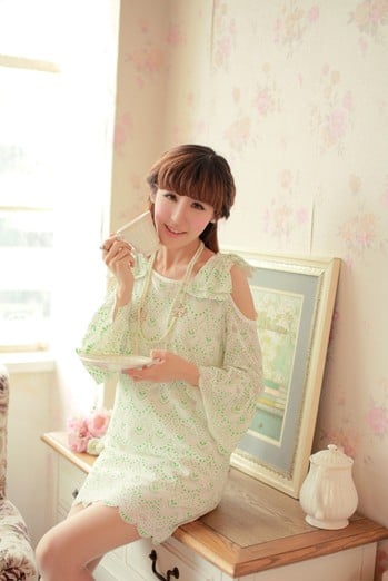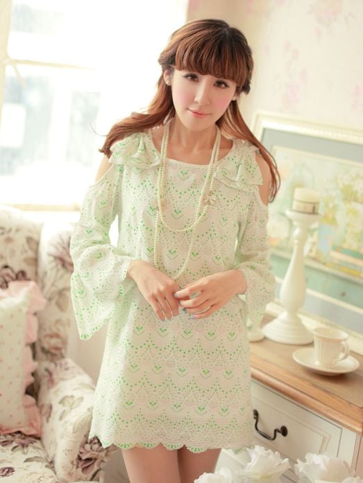Japan Style Autumn Lace Off Shoulder Flare Sleeve Dress
