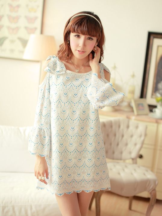 Romantic Autumn Lace Off Shoulder Flare Sleeve Dress
