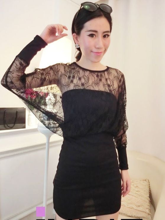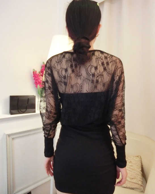 2013 Autumn Long Sleeve Lace Patch Bat Sleeve Dress