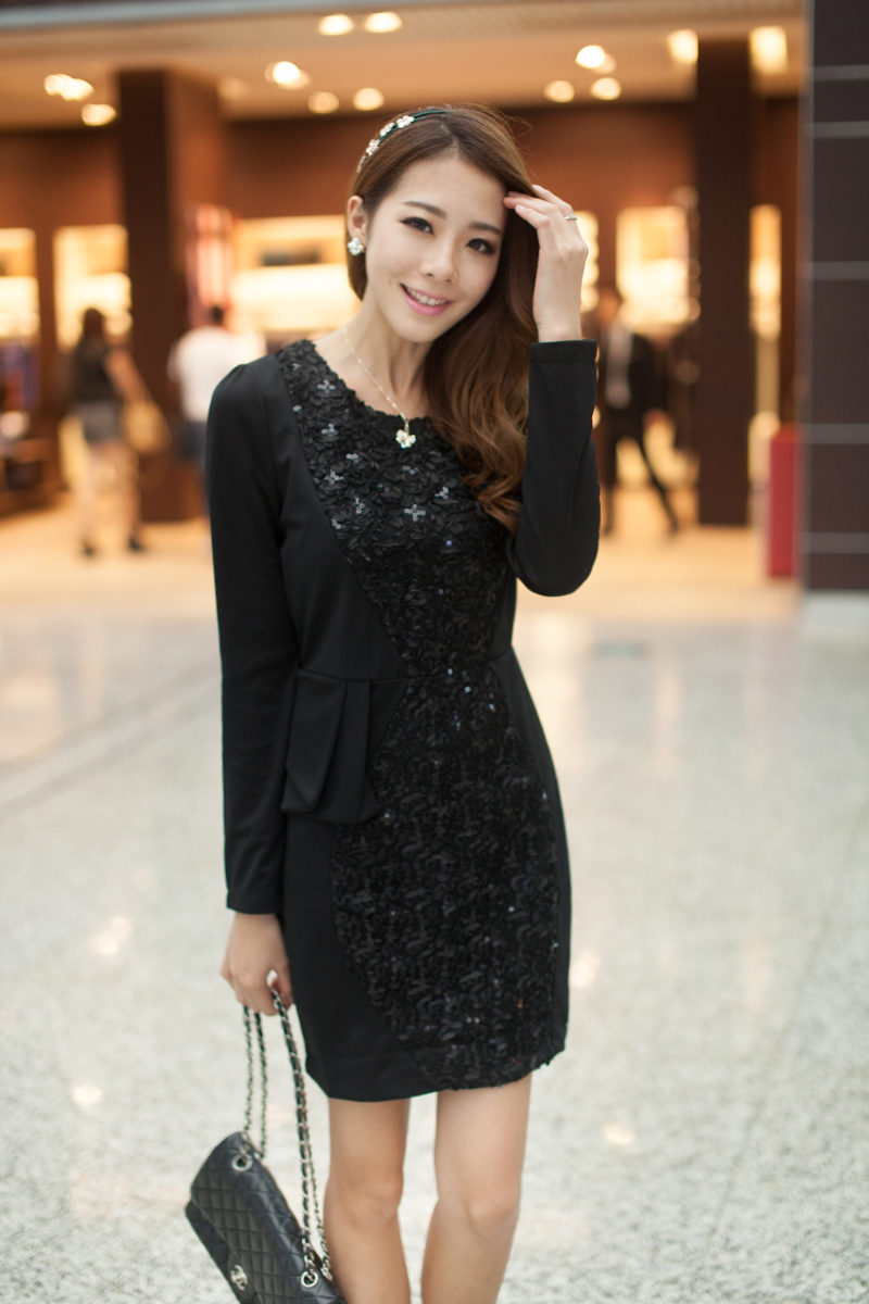 Korean Style Slim Fitted Lace Sequin Decoration Dress