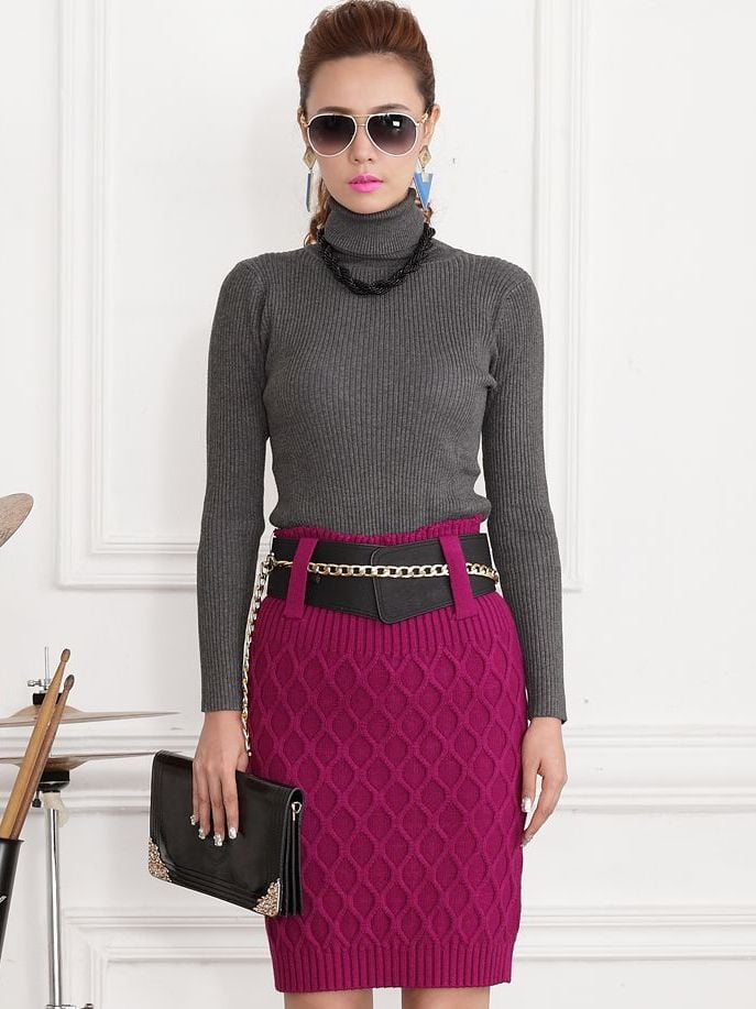 Korean Style Slim Wrap Thicken Knitting Flower Dress