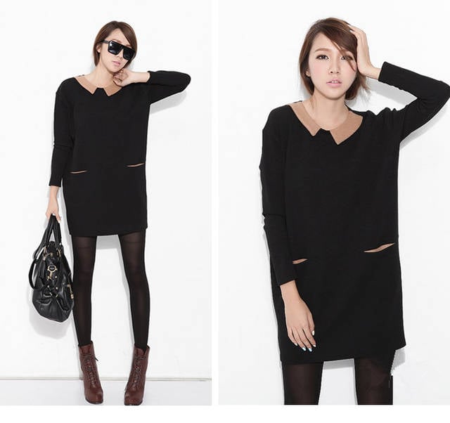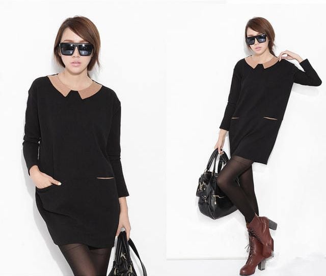 European Style Casual Doll Collar Color Block Slim Fit Dress