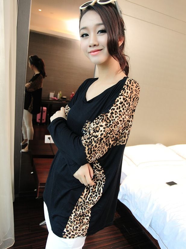 2013 Fashion Leopard Round Collar Long Sleeve Tee