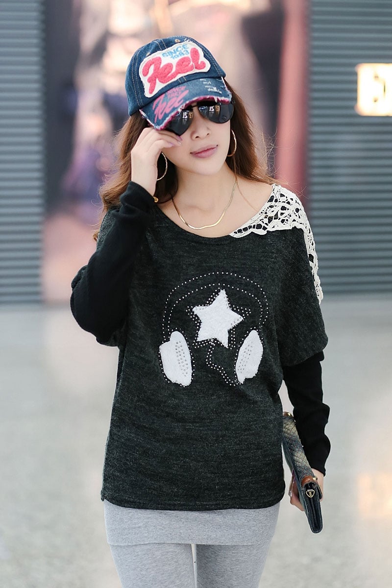 Hot Sale Lace Patchwork Hot Drilling Color Block Long T-Shirts