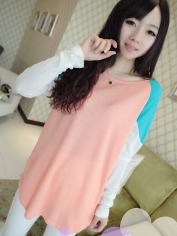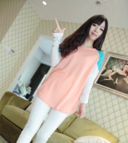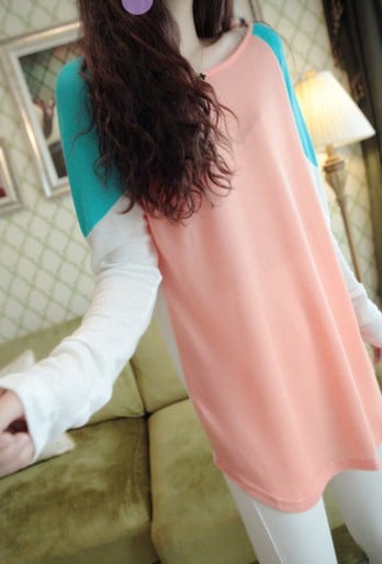 Hot Sale Round Collar Color Block Long Sleeve Tee