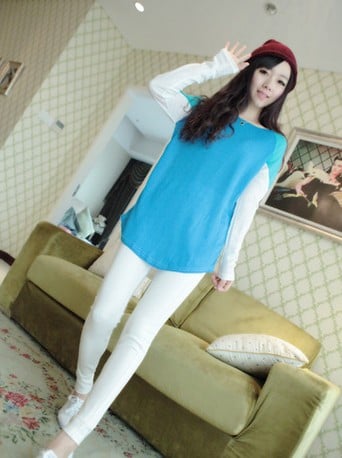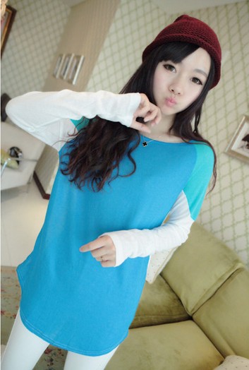 Korean Style Color Block Long Sleeve Tee