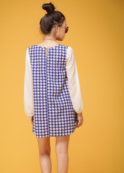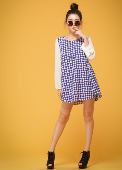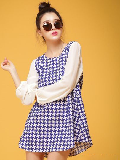 Stylish New Plaid Pattern Long Sleeve Mini Dress