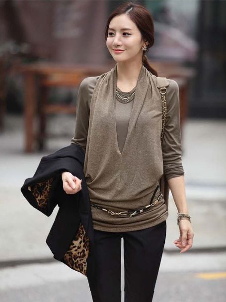 New Autumn Vogue Fake Two Pieces Halter T-shirt