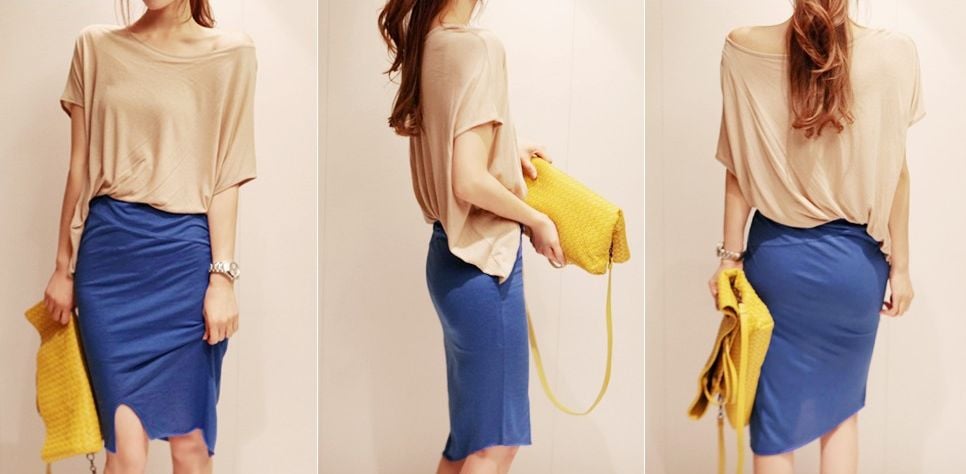 New Korean Asymmetrical Design Bat Sleeve Side Open Dress