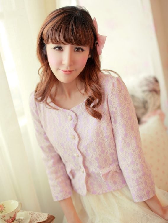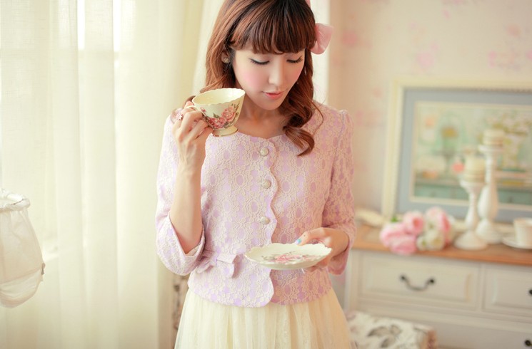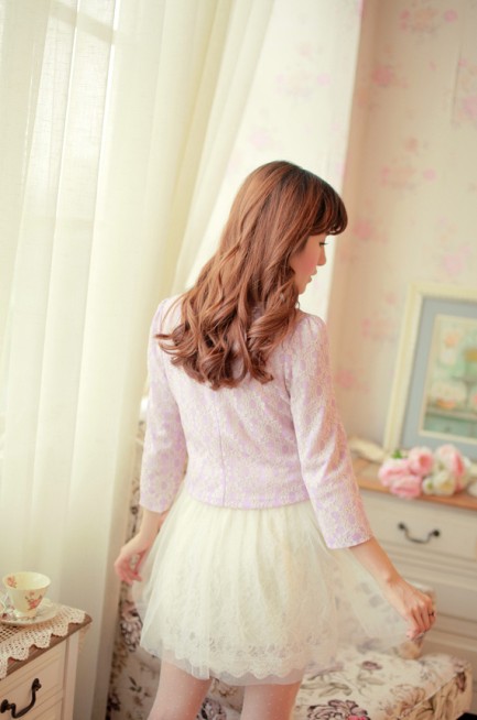 Autumn Sweet Lace Three-quarter Sleeve Single Breasted Coat