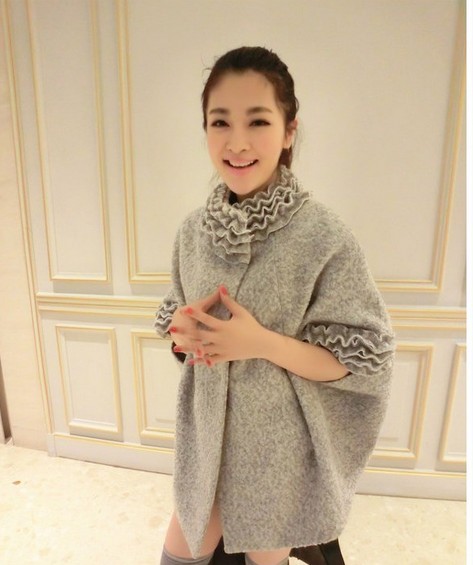 European Style Charming Women Ruffles High Collar Cloak Style Coat