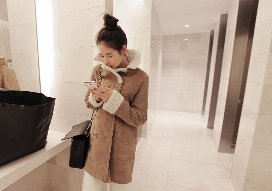 Winter Fashion Polo Neck Double Breasted Patchwork Long Coats