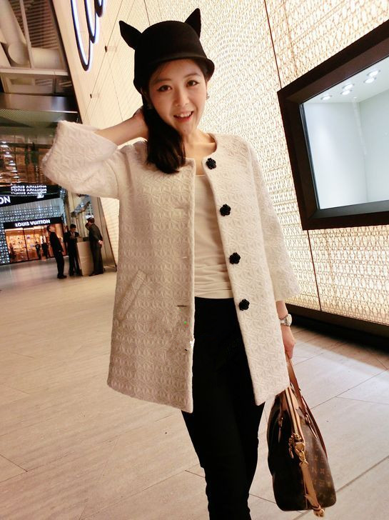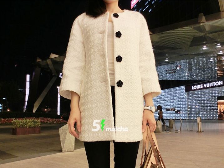 European Style Flower Button Slim Fit Pure Color Long Coat