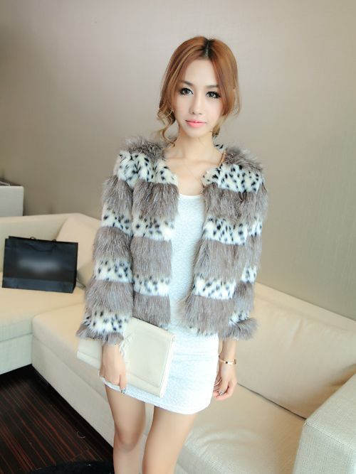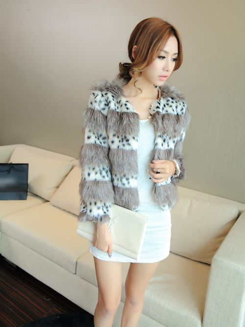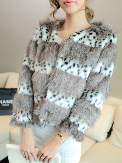 European Style Leopard Printing Round Collar Fur Coat