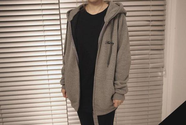 Boyfriend Style Solid Color Zipper Pocket Hooded Hoodies Coats