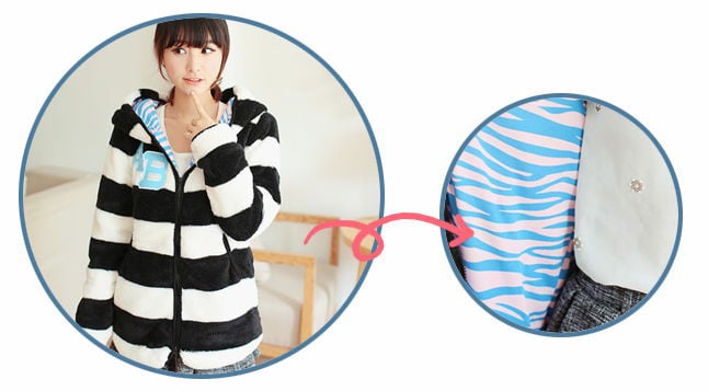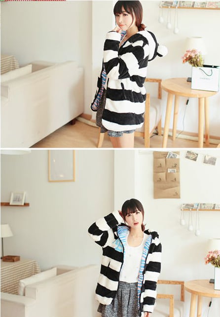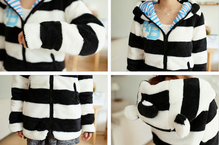Korean Modern Style Velvet Long Sleeve AB Applique Ear Hat Coat