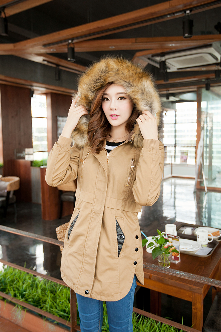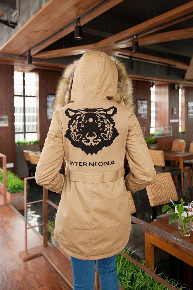 Stunning Tiger Fur Collar Hooded Zipper Patchwork Long Trench Coats