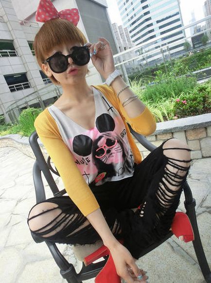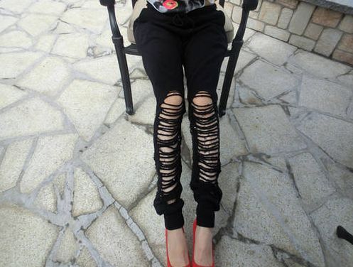 Street Fashion Casual Hole Pulling Rope Long Pants