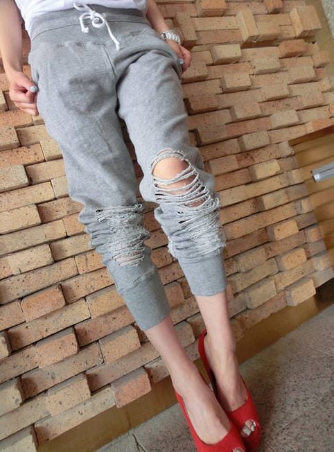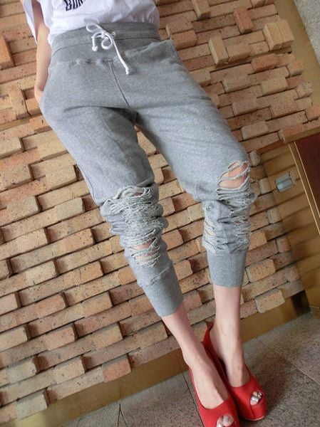 Newest Style Casual Hole Pulling Rope Harem Pants