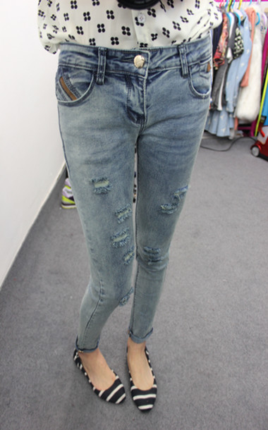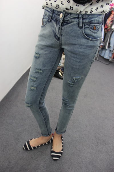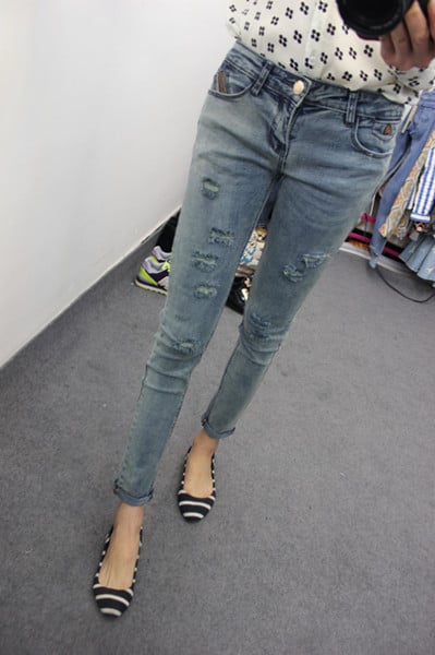Street Fashion Hole Worn Out Smart Skinny Cropped Jeans