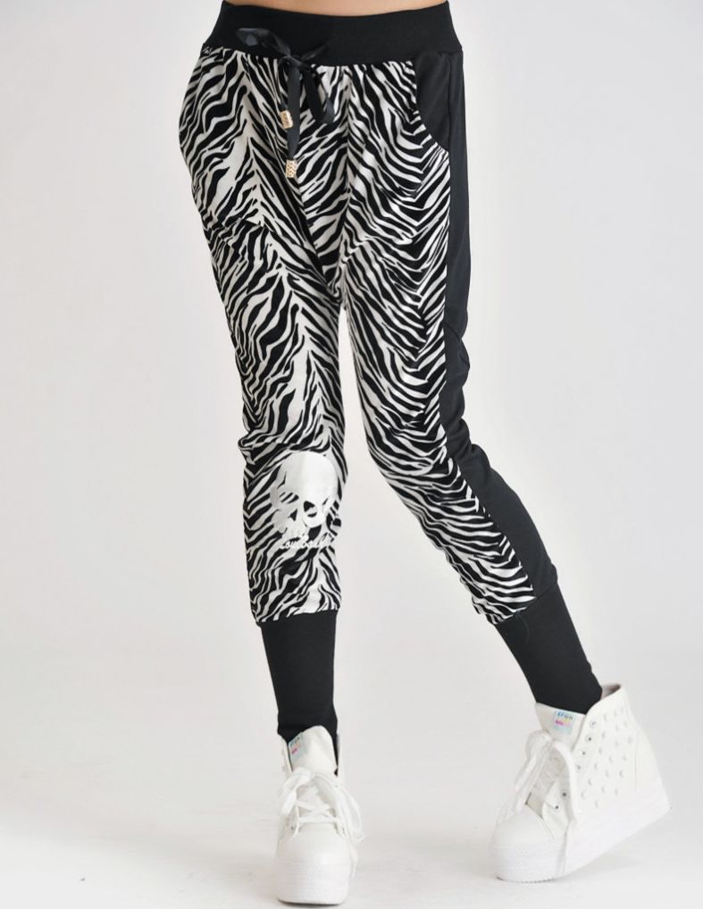 Plus Size Fashion Zebra Skulls Pulling Rope Harem Pants