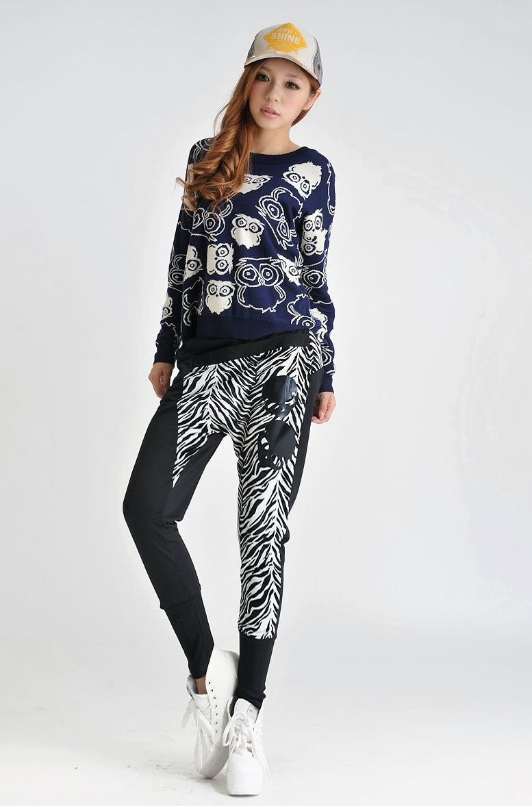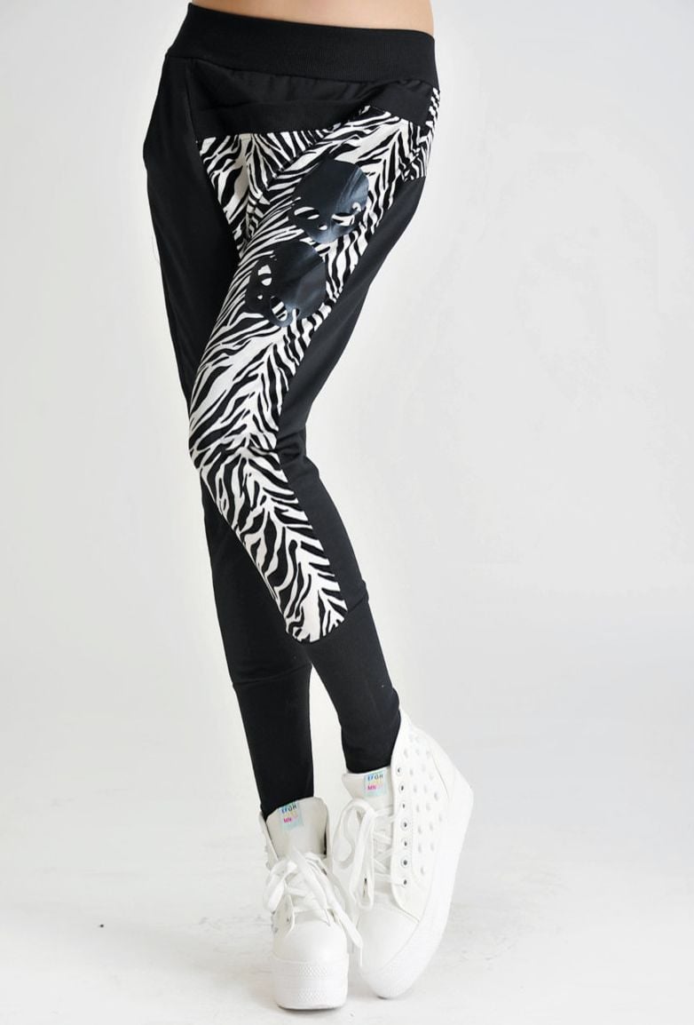 Street Fashion Zebra Skulls Patchwork Color Block Harem Pants