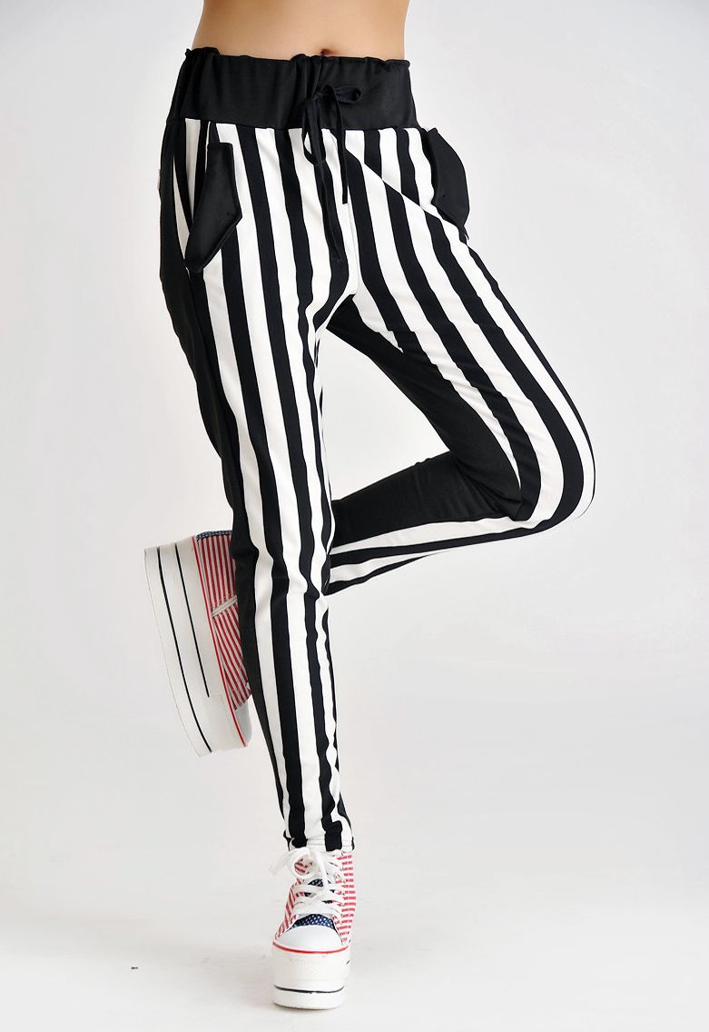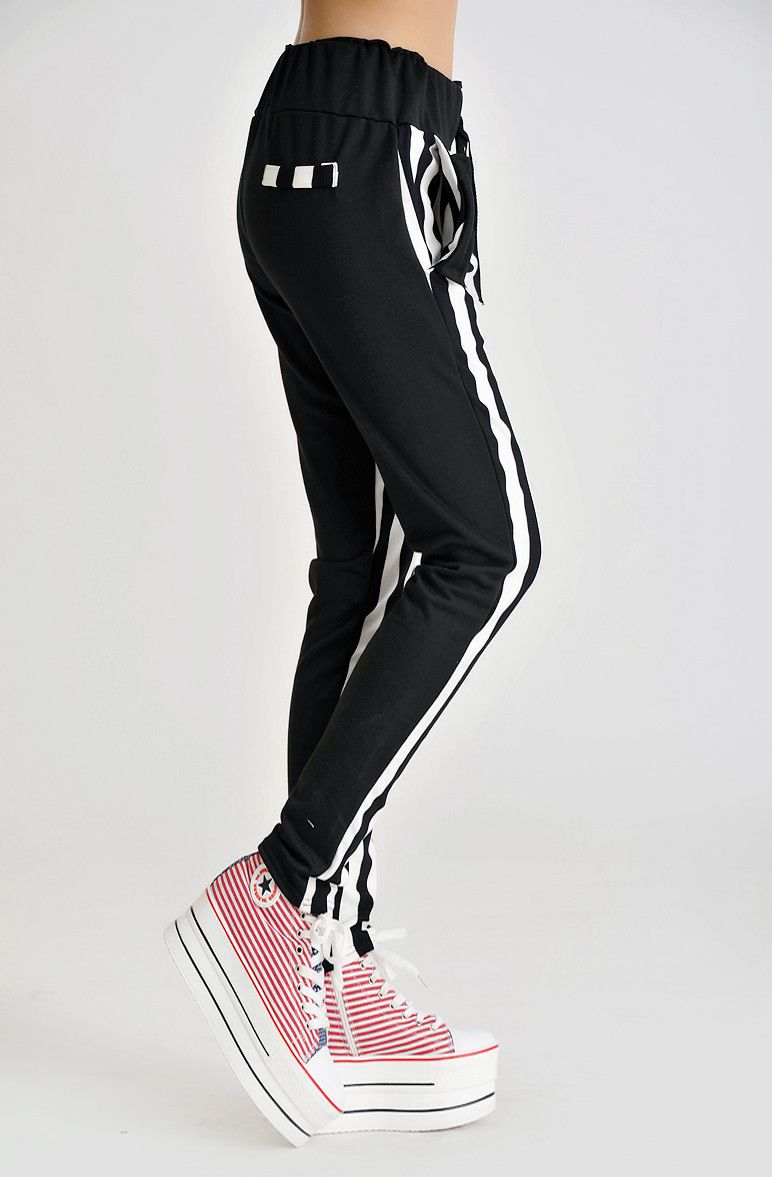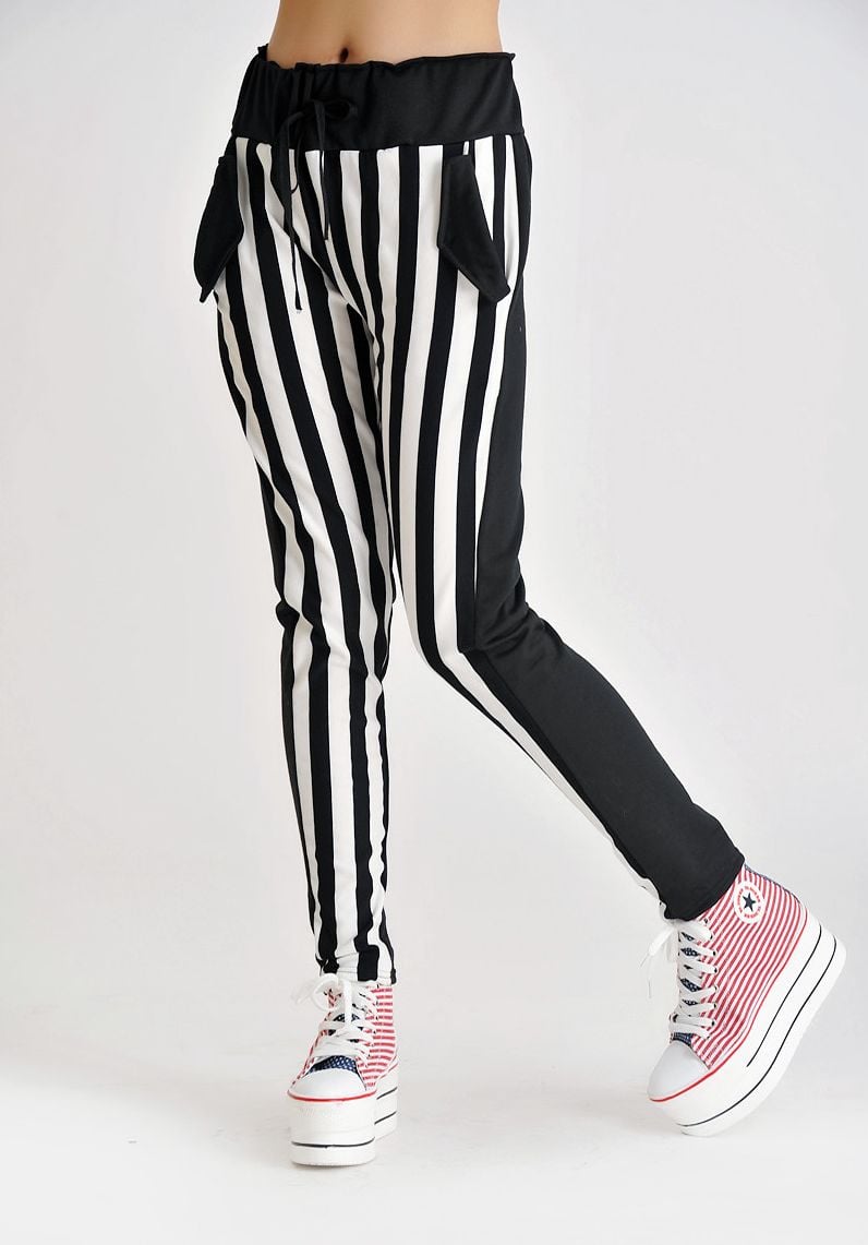 Fall Fashion Striped Patchwork Color Block Pulling Rope Harem Pants