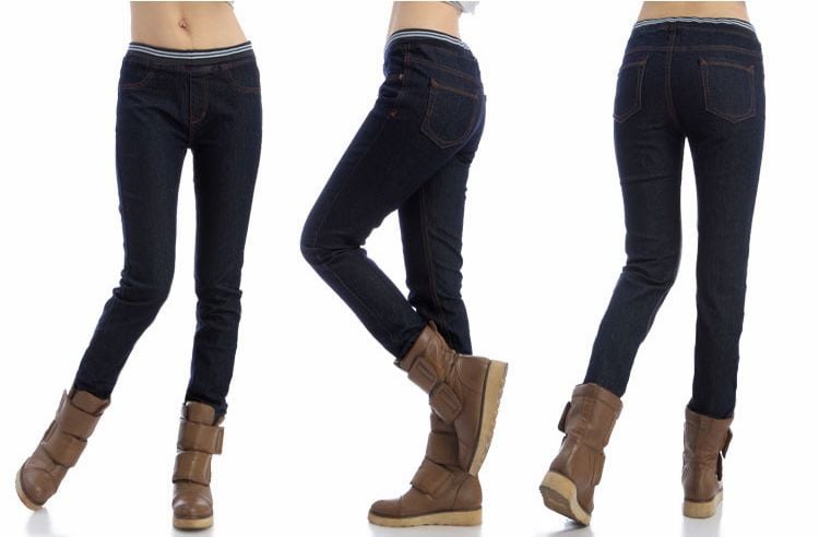 New Arrival Pure Color Elastic Waist Slim Thicken Long Pants