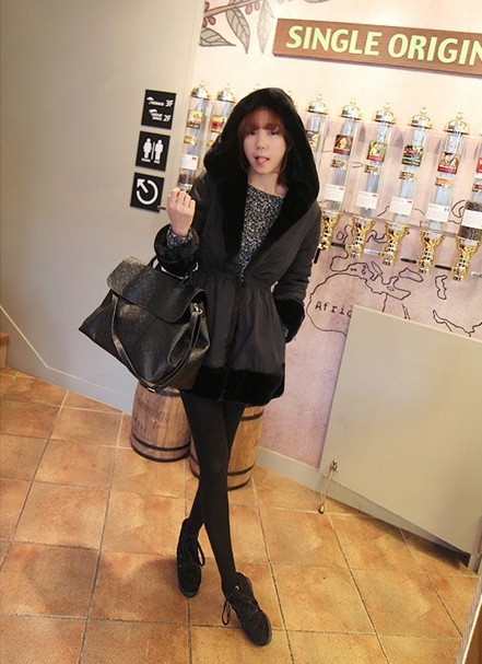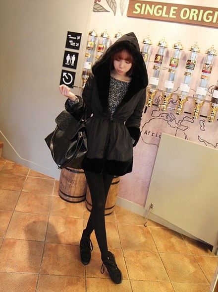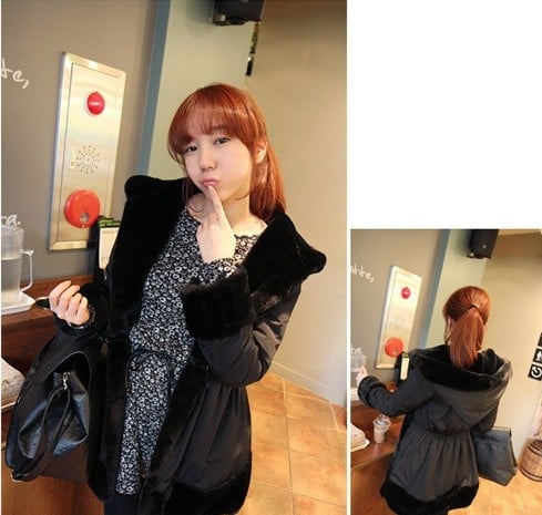 New Arrival Pure Color Fur Collar Thicken Hooded Coat