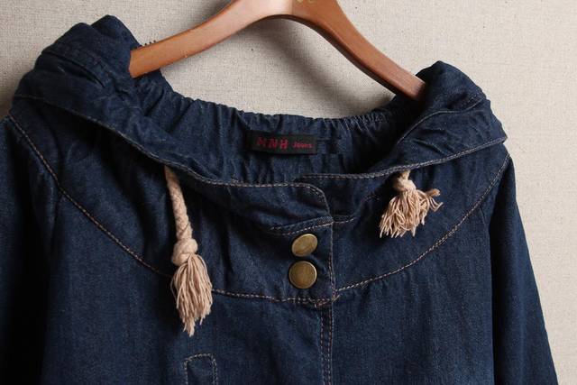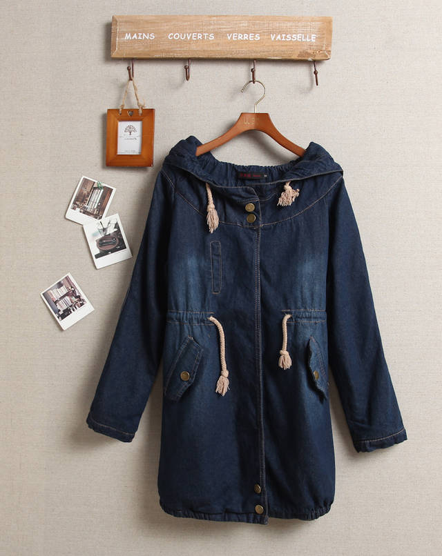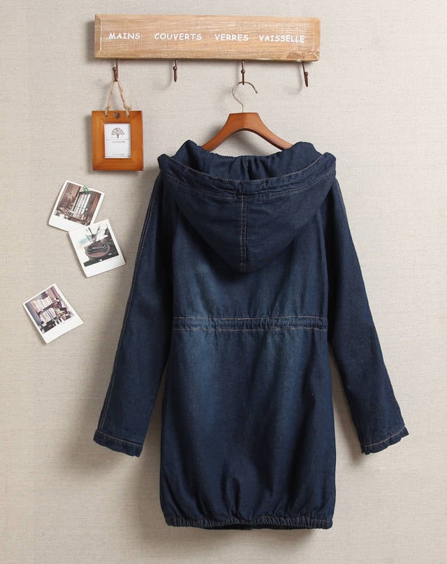 Very Classy Hooded Button Pulling Ropes Long Denim