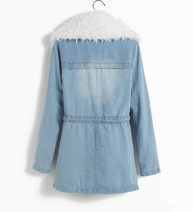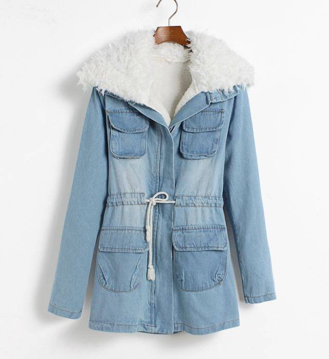 Winter Fashion Lapel Pockets Pulling Ropes Long Denim Jacket