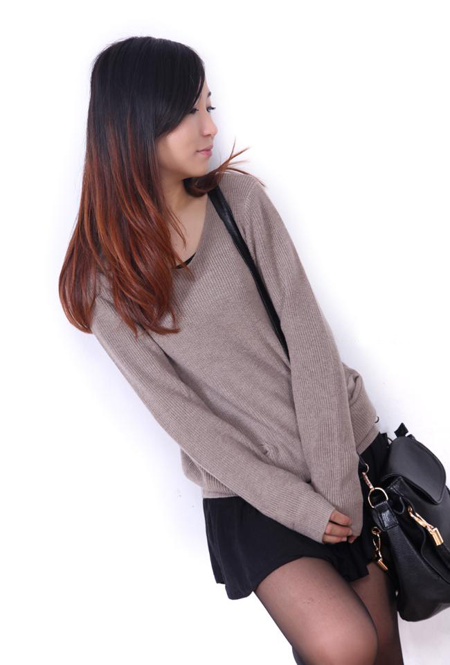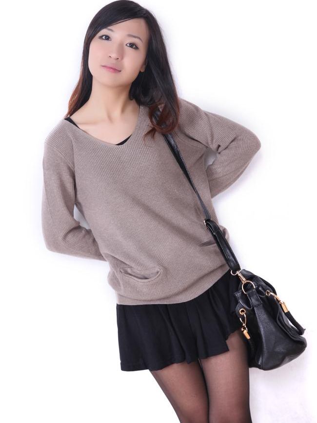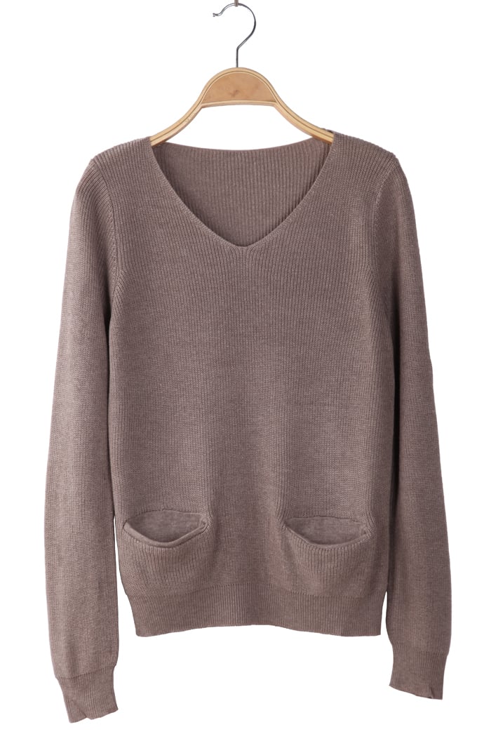 Women Fashion Pocket Solid Color V-Neck Knitted Pullovers