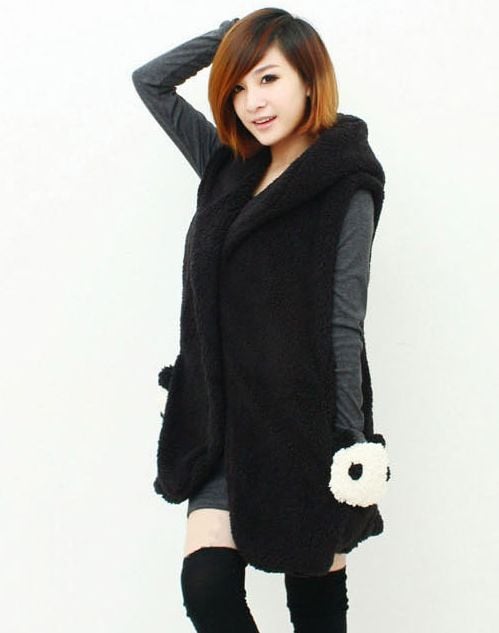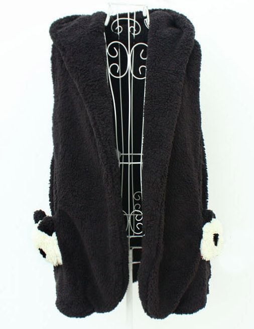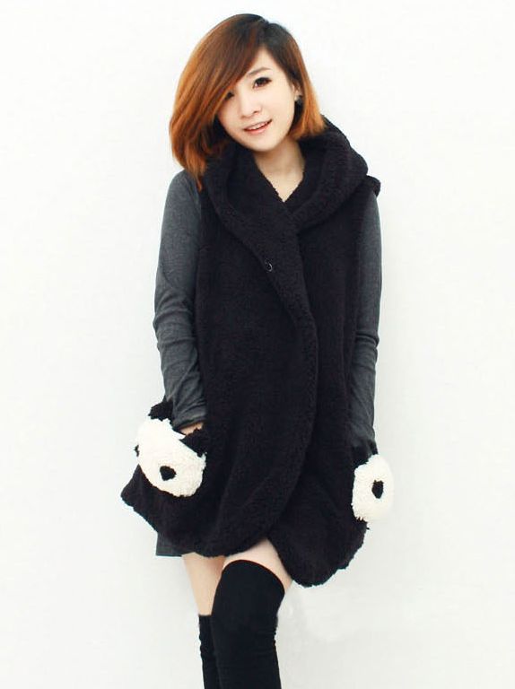 New Stylish Panda Pockets Coral Fleece Waistcoat