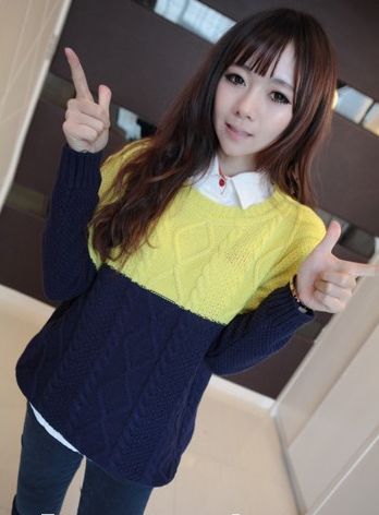Very Joker Patchwork Color Block Round Neck Pullover Swearer