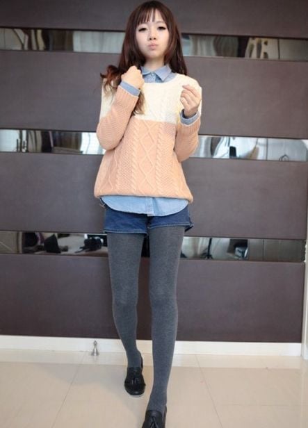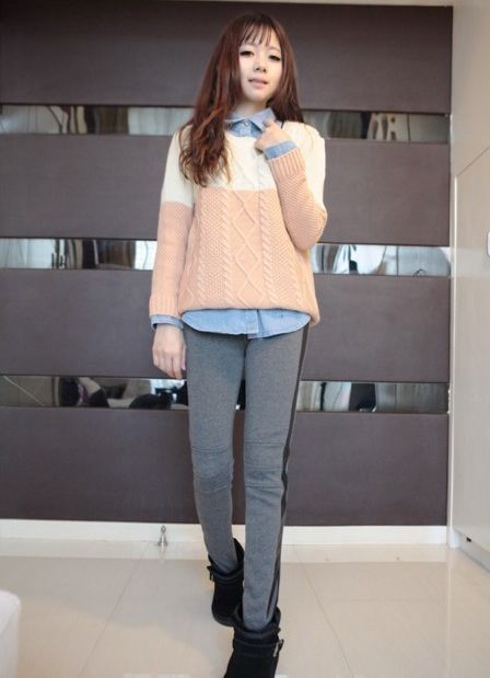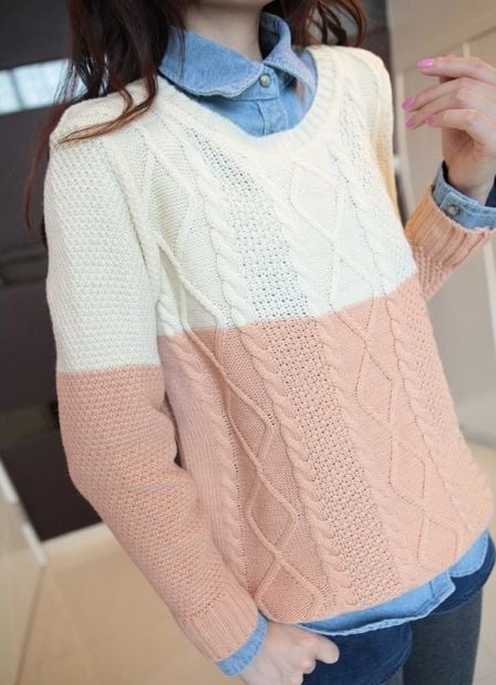 Fresh Style Patchwork Color Block Round Neck Pullover Swearer