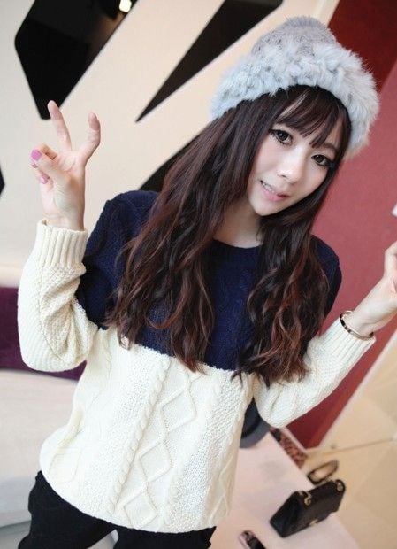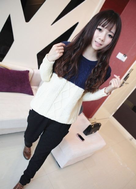 Preppy Style Patchwork Color Block Round Neck Pullover Swearer