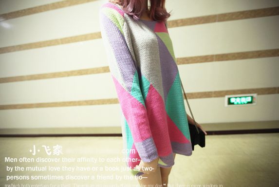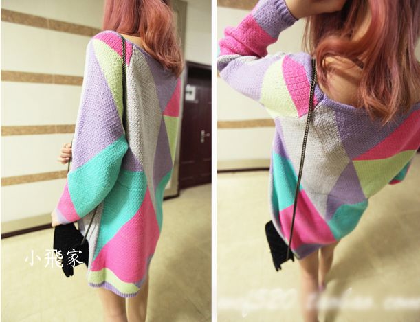 Korean Style Color Block Round Collar Long Sleeve Casual Sweater