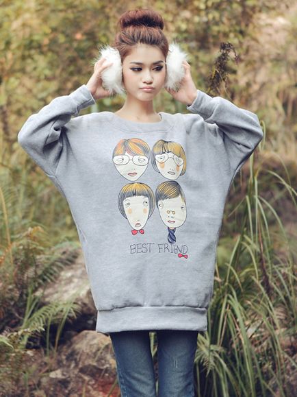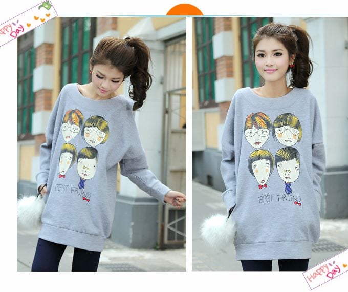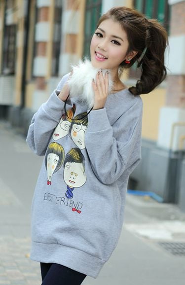 Korean Style Round Collar Family Printing Plus Size Hoodies