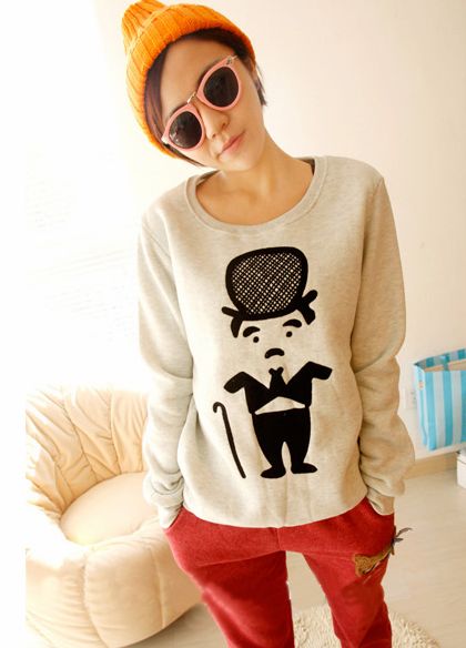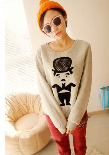 Cool Girls Cartoon Pattern Round Neck Long Sleeve Hoodies