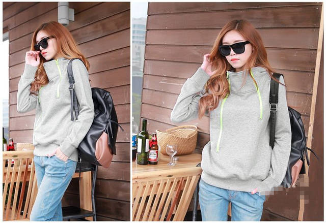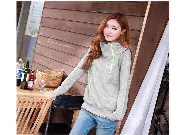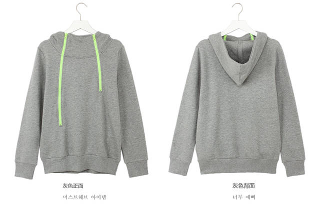 Korean Simplicity Style Double Zip Up Stand Collar Hooded Hoodies