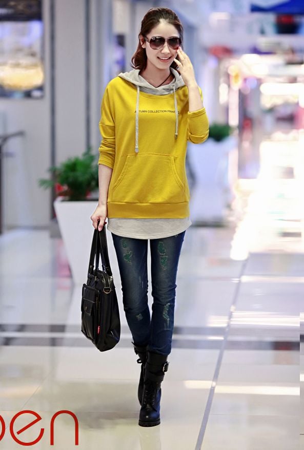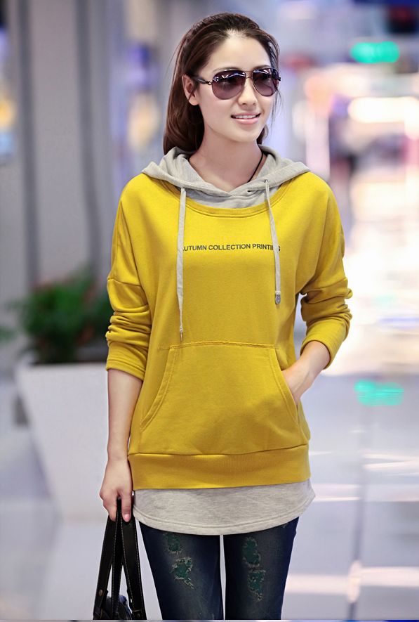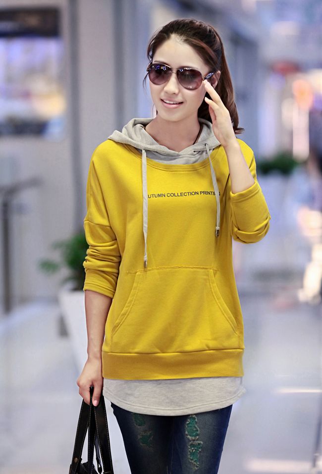 Fake Two Pieces Hooded Color Block Pulling Ropes Hoodies