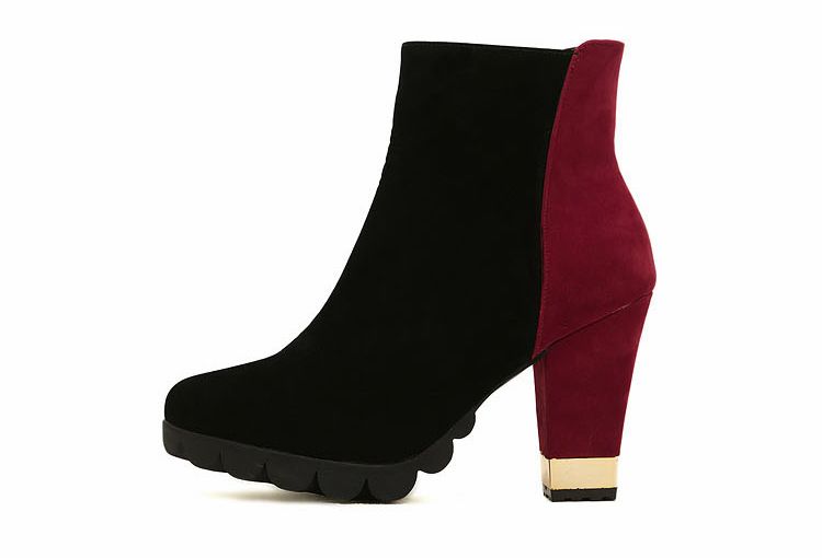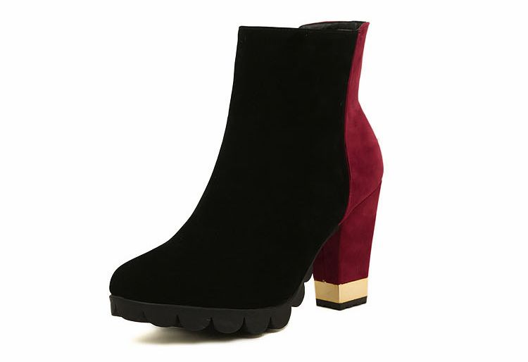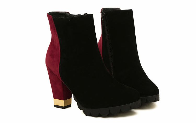 Stylish Round Toe Patchwork Zipper Square Heel Short Boots
