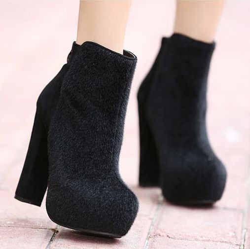 New Arrival Round Toe Zipper Square Heels Platform Boots